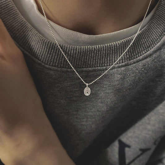 Sterling Silver Ball Chain With Oval Cubic Zirconia Pendant Necklace