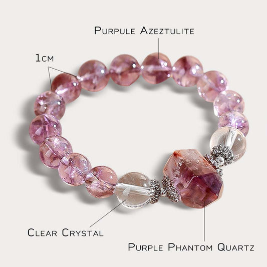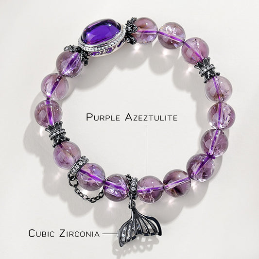 Purple Azeztulite Beads Bracelet with Cubic Zirconia Charm