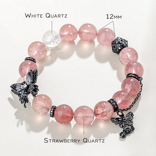 Rose Quartz Healing Crystal Bracelet - Butterfly