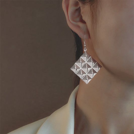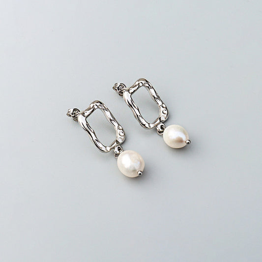 Stainless Steel Rectangle & Freshwater Pearl Drop Earrings