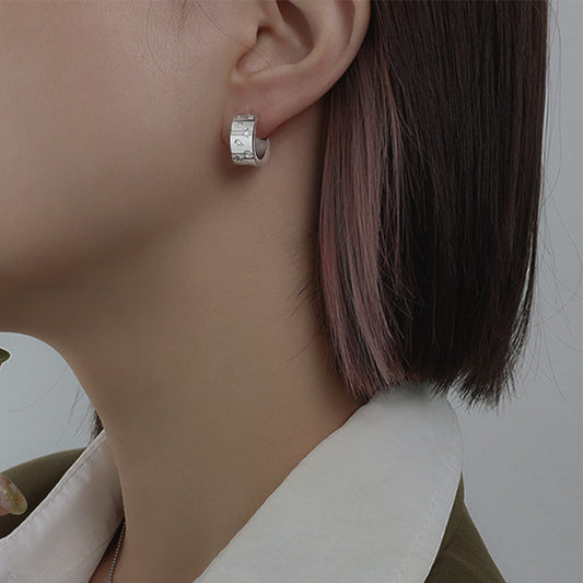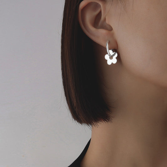 Stainless Steel Metal Sequin Flower Huggie Hoop Earrings