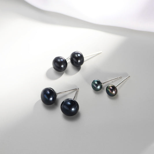 Sterling Silver Black Freshwater Pearl Stud Earrings