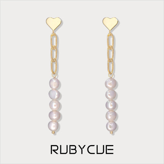 Sterling Silver Chain & Pearls Dangle Drop Earrings