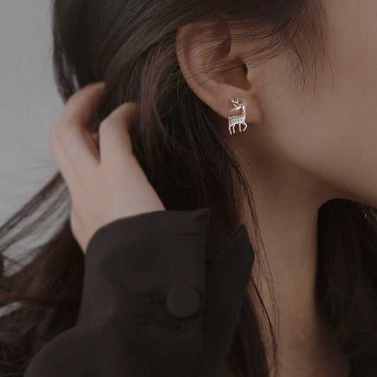 Sterling Silver Christmas Reindeer & Snowflake Diamante Cluster Mismatched Stud Earrings