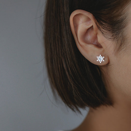 Sterling Silver Aqua Cubic Zirconia Snowflake Stud Earrings