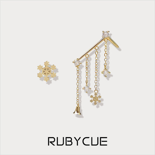 Sterling Silver Christmas Mismatched Stud & Crawler Dangling Earrings