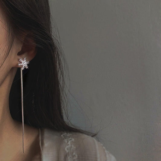 Sterling Silver Snowflake Stud & Chain Drop Long Jacket Earrings