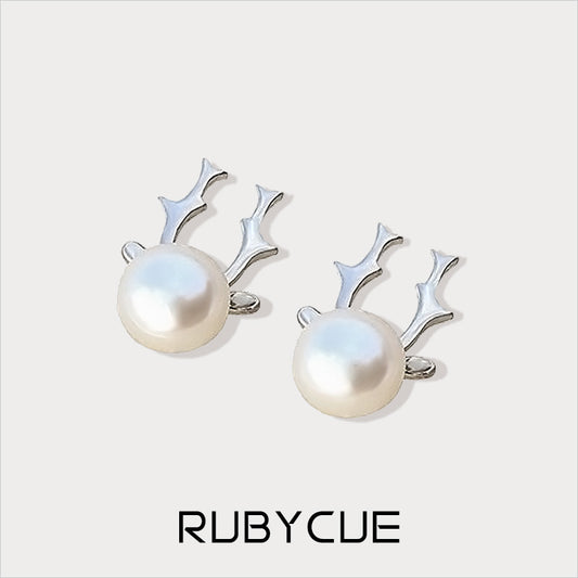 Sterling Silver Stone/Pearl Christmas Reindeer Stud Earrings