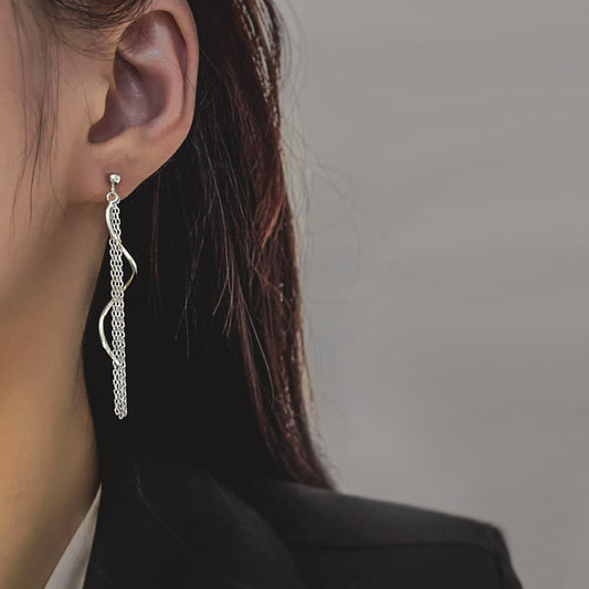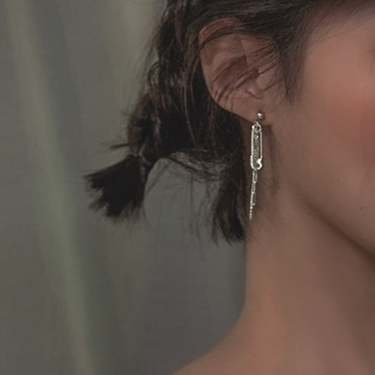 Sterling Silver Safety Pin & Chains Drop Earrings