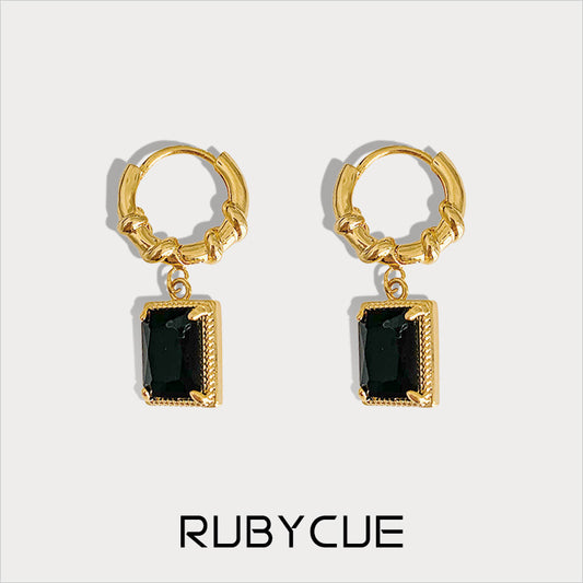 Sterling Silver Twist Huggie Hoop Earrings With Cubic Zirconia Baguette Drops
