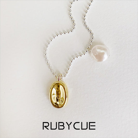 Sterling Silver Ball Chain Dual Color Geometric Pendant Necklace